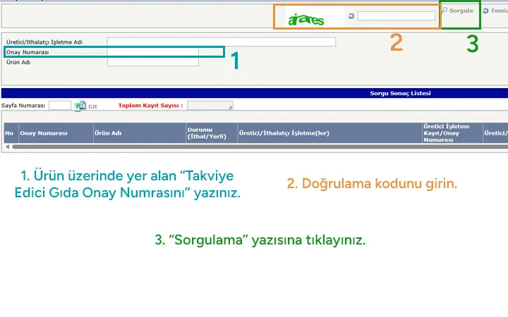 Ambalaj üzerindeki takviye edici gıda numarası ve barkod bilgilerini hazır bulundurun.